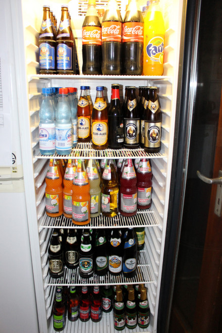Each common room (per floor) has a beer fridge with various beers and soft drinks.