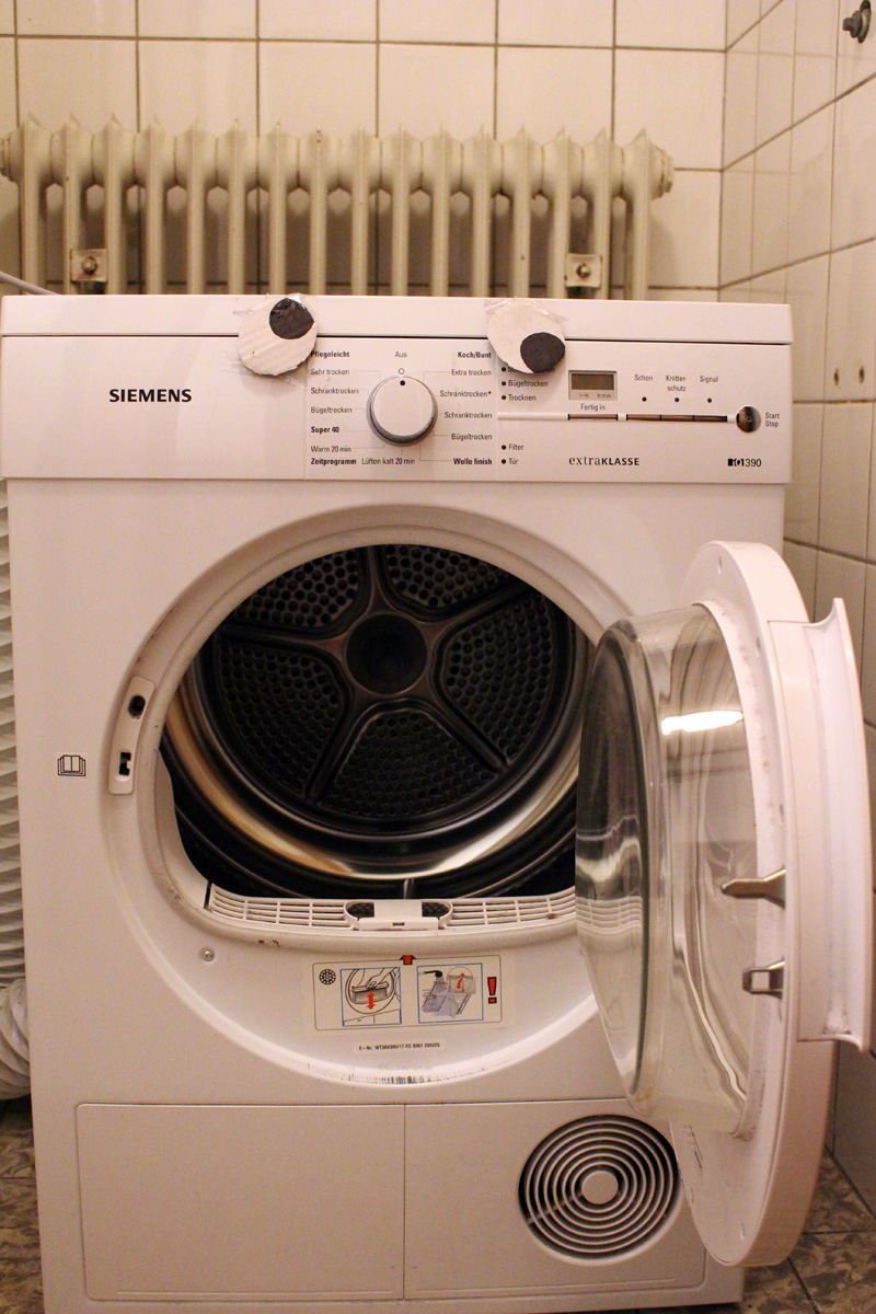 There are two washing machines and a dryer in the house, as well as clothes drying racks in the attic.